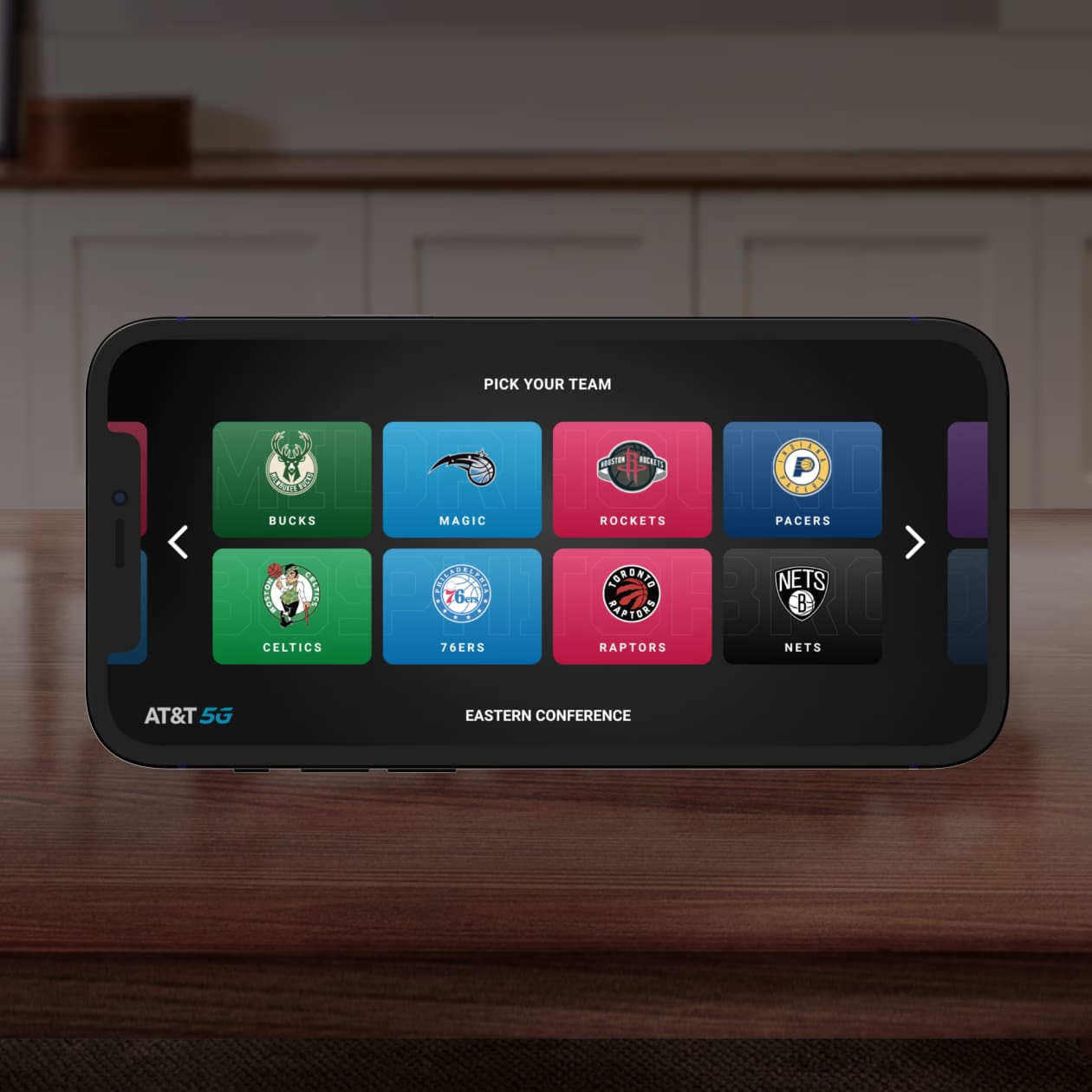 Pick Your Team Screen Design from NBA StatsZone AR App for At&T with Nexus Studios team.