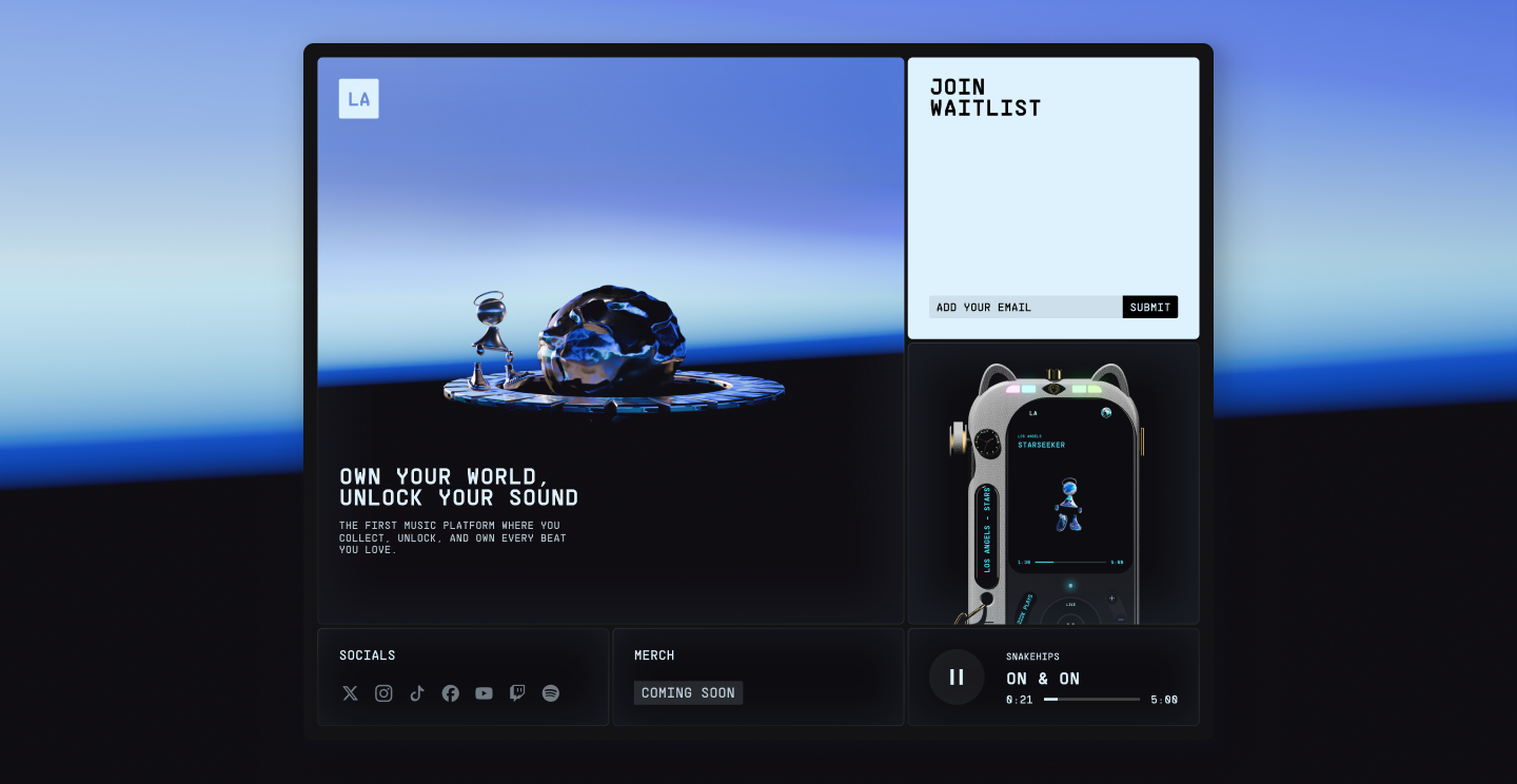 Framer Landing page Website and Branding visual designs Project for LA music player app.